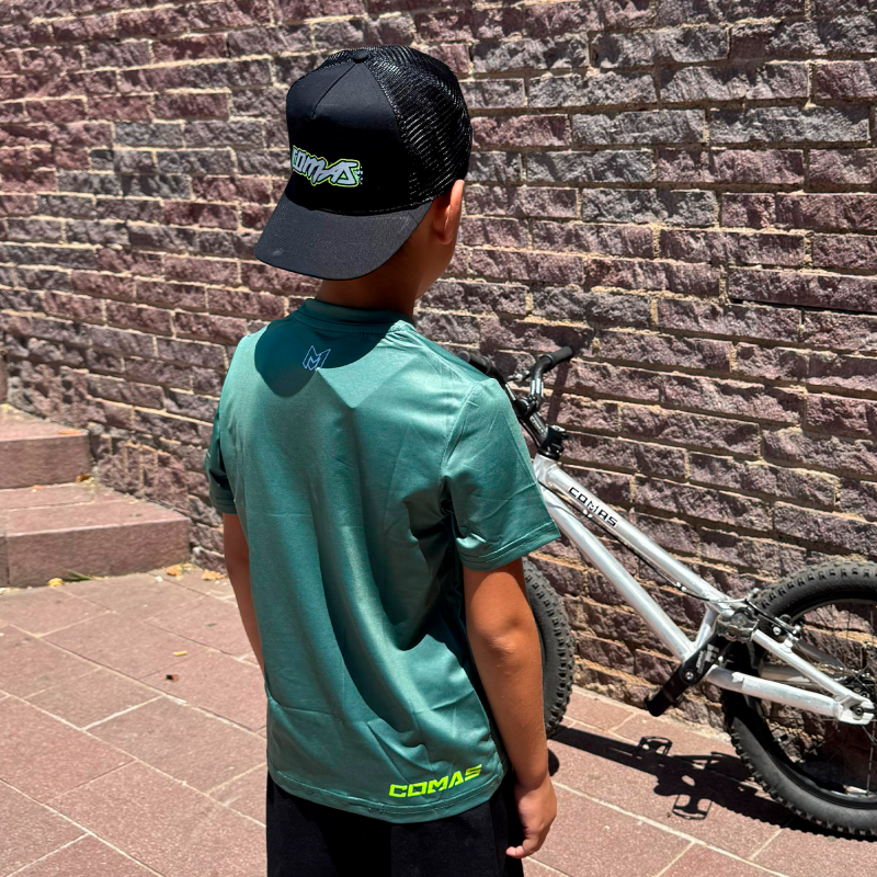 Description- COMAS Graffity Old-school cap. Ideal for all types of situations: racing and casual- Includes rear button closure to improve fit. - Curved visor and back grid. KIDS size.Finish- BLACK color with COMAS logos on the front.