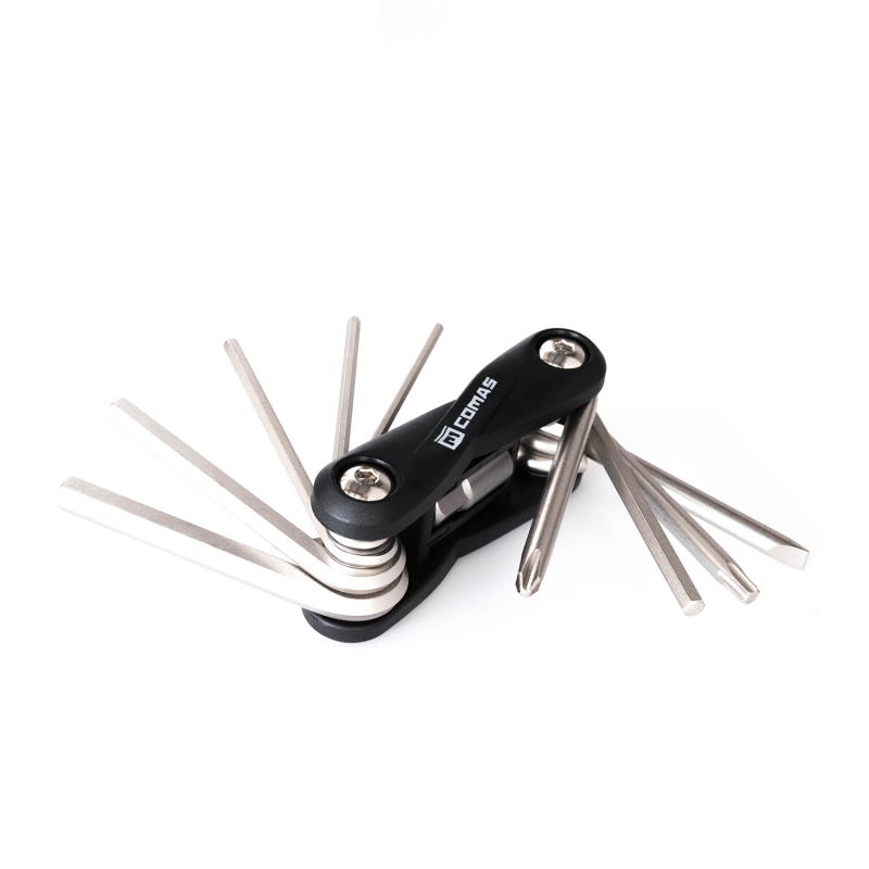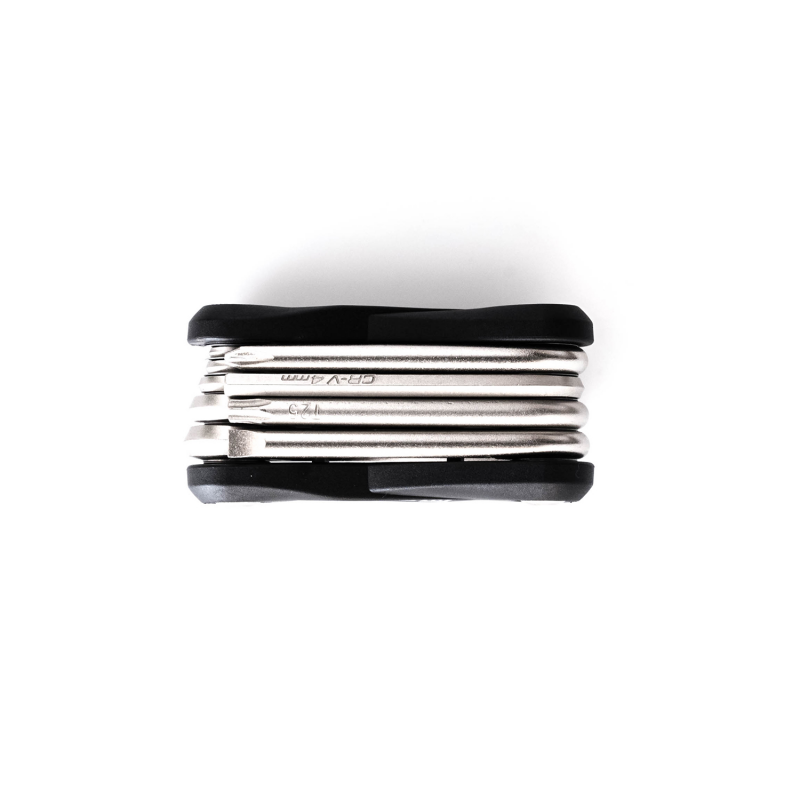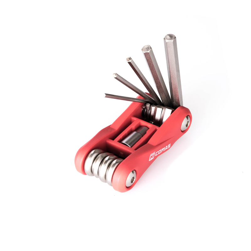 - Herramienta que combina 10 llaves indispensables de distintos tipos y medidas.
